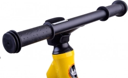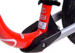 Bezpečie a pohodlie zvyšuje obmedzovač natočenia riadidiel, ktorý bráni prudkým zákrutám, ergonomické riadidlá s protišmykovými gripmi a rýchloupínacie nastavenie výšky sedla (cca 31–37 cm), aby odrážadlo rástlo spolu s dieťaťom. Zadné stupačky umožnia pri zjazde pohodlne oprieť nohy a trénovať rovnováhu.