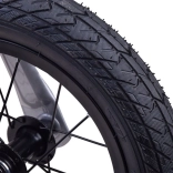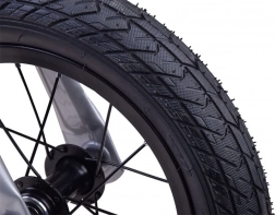 Pneumatiky s dezénom a kovové špice zabezpečujú dobrú trakciu, stabilitu a hladkú jazdu na rôznych povrchoch.