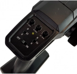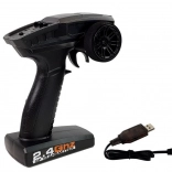 Ergonomický pištoľový ovládač s riadením kolies a plynu na frekvencii 2,4 GHz zaručuje spoľahlivý dosah a jazdu bez vzájomného rušenia.