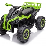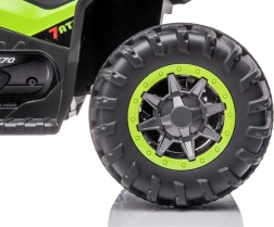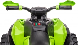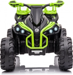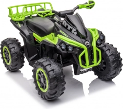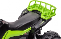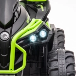Táto detská elektrická štvorkolka zaujme výrazným zeleno‑čiernym dizajnom a realistickým prevedením. Široké pneumatiky s hlbokým dezénom poskytujú istotu na nerovnom teréne, zatiaľ čo ergonomické riadidlá s protišmykovými gripmi zaisťujú pohodlné a ľahké ovládanie. Ideálna na dvor, záhradu aj spevnené cesty.