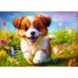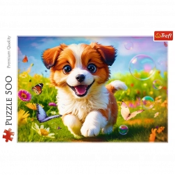 Puzzle Veselý psík sa skladajú z 500 dielikov a zobrazujú roztomilého psa. Hotová skladačka má rozmery 480x340 mm.