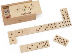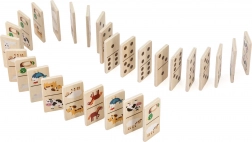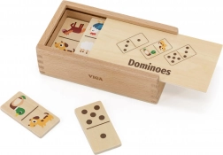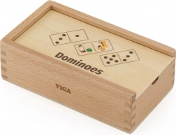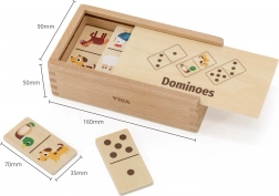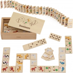 Objavte zábavnú a vzdelávaciu hru pre deti – drevené domino 2v1 od VIGA. Každá doštička je obojstranná: z jednej strany klasické bodky a čísla, z druhej roztomilé zvieratá z farmy. Jednoduché pravidlá, 28 kvalitných drevených dielikov a pevná drevená krabička na jednoduché uloženie robia z tejto hry ideálnu voľbu na rozvoj logického myslenia, počítania a vnímania vzorov u detí od 3 rokov.