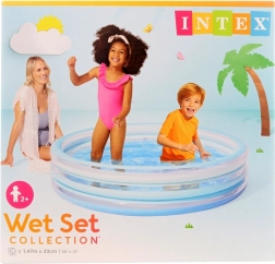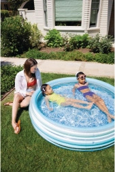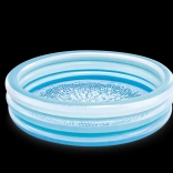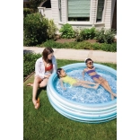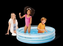 Modrý nafukovací detský bazénik poskytne deťom príjemné osvieženie počas horúcich dní. Stabilná konštrukcia z troch nafukovacích prstencov zabezpečuje pevnosť a mäkké okraje, zatiaľ čo podlaha z mäkčeného PVC je príjemná na dotyk a obmedzuje pošmyknutie.