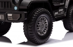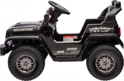 Čierne elektrické auto Off Road Mountain pre deti je navrhnuté s dôrazom na detaily, ktoré napodobňujú skutočné terénne vozidlo.