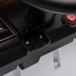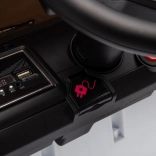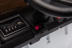 Bezpečnosť je zaručená vďaka bezpečnostným pásom a ovládaču s tromi rýchlosťami a núdzovým tlačidlom Stop. Deti ocenia LED svetlá a otvárateľné dvere, ktoré napodobňujú skutočné vozidlo. Vozidlo je tiež vybavené interaktívnym audio panelom s MP3, SD kartou, AUX a USB vstupom.