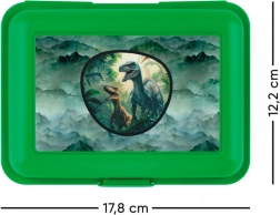 Plastový box na desiatu s obrázkom dinosaura je nielen funkčný, ale aj štýlový. S tradičným zámkovým uzatváraním, udržuje vaše jedlo bezpečne vo vnútri. Deliciaca prepážka umožňuje jednoduchú organizáciu a oddelenie jedla.