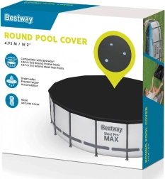 Najlepšia ochrana pre váš bazén s konštrukciou: Táto univerzálna krycia plachta od Bestway poskytuje vášmu bazénu spoľahlivú ochranu pred hmyzom, vtákmi, lístím a ľahkým dažďom.