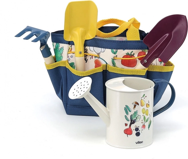Detský záhradný set Vilac je ideálnou voľbou pre rozvoj motorických zručností a vzťahu k prírode u vašich detí. Obsahuje náradie vyrobené z dreva a kovu, prispôsobené pre detské ruky. Praktická záhradná taška ponúka mnoho úložného priestoru, je umývateľná a umožňuje jednoduché skladovanie i prepravu náradia.