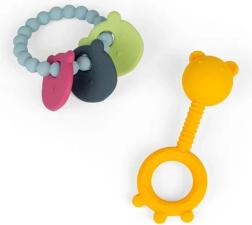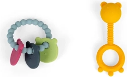 Silikónové hrkálko a hryzátko 2 v 1 a hryzací krúžok pre bábätká