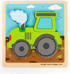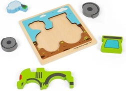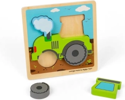 Objavte kúzlo dreveného vkladačkového puzzle s motívom traktora, ktoré je ideálne navrhnuté pre malé detské rúčky. Skladá sa z piatich robustných dielikov, ktoré sú farebné a jednoducho uchopiteľné. Správnym umiestnením dielikov deti získavajú radosť z hotového zeleného traktora. Puzzle nielen baví, ale tiež podporuje:
