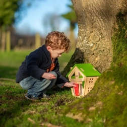 Domček je vyrobený z dreva s certifikátom FSC® a natretý netoxickými farbami.