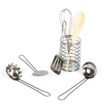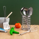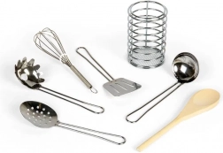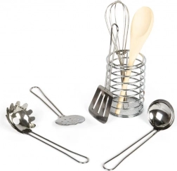 Sada nástrojov je uložená v praktickej valcovej nádobe, čo uľahčuje manipuláciu a skladovanie. Deti môžu šľahať, miešať a servírovať ako praví kuchári, čo rozvíja ich jemnú motoriku a koordináciu ruky-očí. Vyrobené z kvalitných materiálov, náradie je tiež bezpečné a netoxicky farbené.