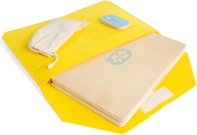 Navyše je dodávaný s robustným púzdrom pre ľahké prenášanie, čo robí tento notebook ideálny pre cestovanie. Rodičia môžu mať pokoj v mysli, pretože drevo použité k výrobe je udržateľné a spĺňa európske bezpečnostné normy.