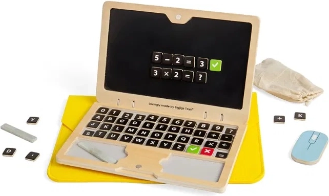 Perfektná hračka pre malých študentov, drevený magnetický notebook, umožňuje deťom rozvíjať schopnosť čítať, písať a počítať pomocou interaktívneho hrania. Súčasťou je magnetická obrazovka s odnímateľnými číslami i symbolmi, rovnako ako krieda pre vlastné kreatívne kreslenie. Tento výrobok podporuje krajinnú zábavu bez obrazoviek, čo prispieva k lepšiemu sústredeniu detí.