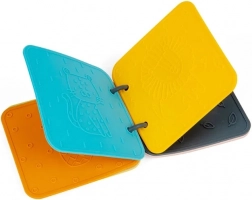 Knižka je vyrobená z netoxického potravinárskeho silikónu, ktorý je bezpečný a šetrný k citlivej detskej pokožke.
