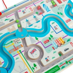 Vyberte sa na dobrodružnú cestu po rušných uliciach Londýna s týmto štýlovým magnetickým bludiskom. Pomocou červeného magnetického pera môžu deti viesť 15 magnetických guličiek bludiskom, zatiaľ čo spoznávajú ikonické pamiatky ako Buckinghamský palác, London Eye a Tower Bridge. Magnetické bludisko deti nielenže zabaví, ale aj pomáha rozvíjať ich schopnosti v riešení problémov.