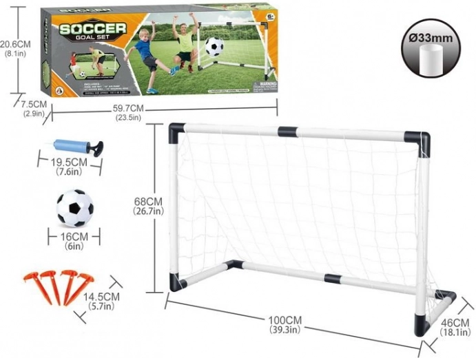 Futbalová sada pre malých aj veľkých hráčov, ktorá zahŕňa skladaciu bránku a loptu. Skvelý doplnok pre všetkých fanúšikov futbalu, ideálny na hranie na záhrade alebo v parku.