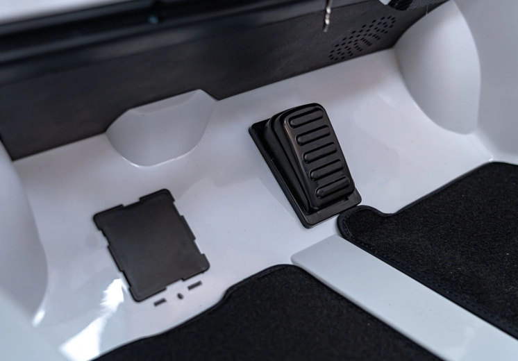 Štyri výkonné motory (4x200 W) v kombinácii s akumulátorom 24 V / 7 Ah poskytujú plynulú akceleráciu, dobrú dynamiku aj pri dvoch deťoch a spoľahlivý dojazd.
