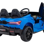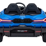 Luxusné detské elektrické autíčko inšpirované LAMBORGHINI Revuelto ponúkne dve sedadlá z ekokože, silný pohon 4x200 W, batériu 24 V 7 Ah a ovládanie 2,4 GHz diaľkovým ovládačom so zastavením Stop. Oceníte LED svetlá vpredu aj vzadu, mäkké EVA kolesá, plynulý soft start, otváracie dvere a bohatý audio panel s FM, MP3, Bluetooth, AUX a USB.