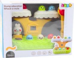 Hra Whack‑a‑Mole prináša klasickú „mlátenú“ zábavu v modernom prevedení. Farebné postavičky vyskakujú z kmeňa stromu, dieťa ich triafa mäkkým kladivkom a sleduje svoj postup na digitálnom počítadle bodov. 20 vstavaných melódií a svetelné efekty vytvárajú veselú atmosféru, pričom otáčajúci sa zajačik ešte umocňuje interakciu.
