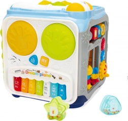 Táto interaktívna kocka aktivít je navrhnutá tak, aby rozvíjala zmyslové vnímanie, jemnú aj hrubú motoriku a logické myslenie detí. Vďaka pestrej škále funkcií láka k prieskumu, podporuje sústredenie aj koordináciu oko–ruka a motivuje k samostatnej aj spoločnej hre.