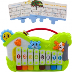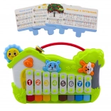 Vďaka priloženým 5 kartám s notami a jednoduchými pesničkami sa deti naučia krok za krokom zahrať známe melódie, trénujú sústredenie, rozpoznávanie zvukov a rozvoj hudobného sluchu. Bezpečné plastové materiály, kovové lamely xylofónu a zaoblené hrany zabezpečujú pohodlné a bezpečné používanie už od útleho veku.