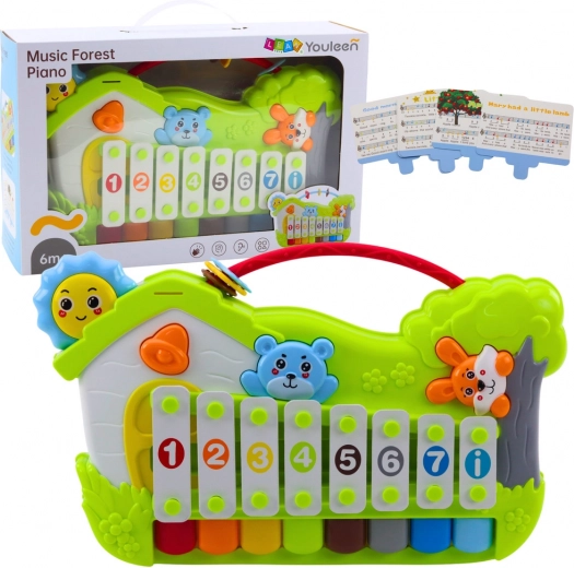 Lesné hudobné pianinko kombinuje kúzlo klasického xylofónu s klávesmi pianinka, takže si deti môžu vytvárať vlastné melódie a zlepšovať koordináciu pohybov. Očarí ich roztomilý lesný motív so zvieratkami a farebné, očíslované klávesy, ktoré uľahčujú učenie základných tónov aj rytmu.