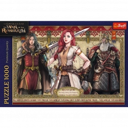Zábavné puzzle Pán prsteňov: Vojna Rohirov s 1000 dielikmi, ktoré zobrazujú postavy z anime inšpirovaného dielom J.R.R. Tolkiena. Po zostavení vytvoria pútavý obrázok o rozmeroch 683x480 mm.