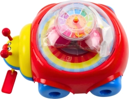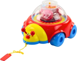 Pod priehľadnou kupolou sa pri jazde veselé guľôčky roztočia a upútajú pozornosť. Hore je umiestnený otočný ciferník, ktorý motivuje k manipulácii a hravou formou podporuje prvé vnímanie času. Vďaka praktickej šnúrke na ťahanie si deti precvičia rovnováhu, orientáciu a jemnú aj hrubú motoriku. Skvelé ako darček pre deti od 12 mesiacov.
