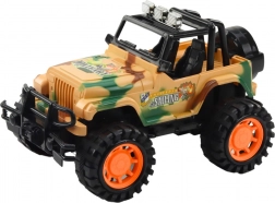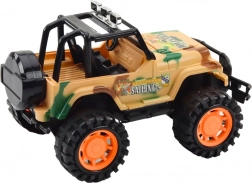 Detské terénne auto v béžovom maskáčovom štýle prináša veľa akcie: má zvýšený podvozok, veľké kolesá s hlbokým dezénom a odolnú plastovú konštrukciu na jazdu doma aj vonku. Rozmery vozidla 25 × 16,5 × 15,5 cm.