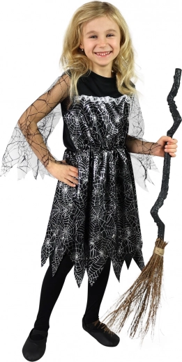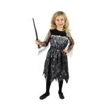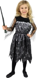 Tento čarodejnický kostým je ideálnou voľbou pre malé slečny vo veku 4-6 rokov (výška 105-116 cm). Kostým sa skladá z čiernych šiat so striebornou pavučinou, ktoré dodávajú tajomný a magický vzhľad. Je navrhnutý tak, aby bol pohodlný na nosenie a umožňoval voľný pohyb.