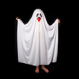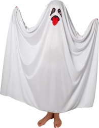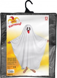 Roztomilý a strašidelný kostým ducha pre deti vo veku 3–7 rokov ponúkne jednoduché prezlečenie na Halloween, karneval aj školské besiedky. Je z ľahkého materiálu, má pohodlný strih a otvory na oči pre bezpečný výhľad. Univerzálny biely plášť s potlačou tváre a dĺžkou cca 106 cm od hlavy sa hodí pre chlapcov aj dievčatá.