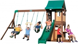 Kompaktné vonkajšie ihrisko BACKYARD DISCOVERY Lakewood prináša deťom nekonečnú zábavu aj do menších záhrad. Ponúka dve hojdačky, trapez pre malých akrobatov, zvýšenú hernú platformu s farebným tienidlom, skutočné dvere a okno s lavičkou a najmä rýchlu šmýkačku 244 cm. Odolná cédrová konštrukcia a premyslené detaily zaisťujú bezpečnú hru pre deti od 3 rokov.