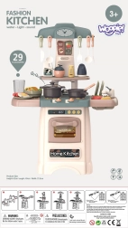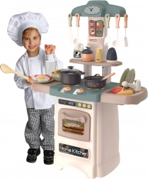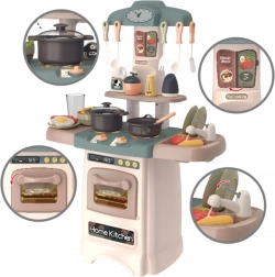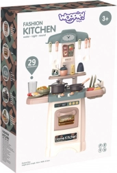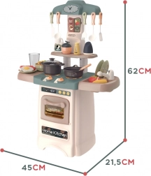 Táto moderná kuchynka WOOPIE prináša deťom realistický zážitok z varenia. Vďaka svietiacim a zvukovým horákom sa varenie stáva zábavnou hrou, zatiaľ čo funkčný kohútik so skutočnou vodou umožní umývať riad ako v naozajstnej kuchyni. Nechýba otváracia rúra s displejom a tlačidlami, klasické hodiny, drez so sušičom na taniere, police a háčiky na príslušenstvo.