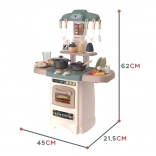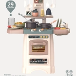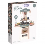Štýlová detská kuchynka WOOPIE poteší každého malého kuchára. Ponúka svetelné a zvukové efekty varnej dosky, funkčný kohútik s obehom skutočnej vody, otváraciu rúru a množstvo pohyblivých prvkov. Súčasťou je bohatá sada 29 kuchynských doplnkov, ktoré podnecujú kreativitu, rolové hry a rozvoj jemnej motoriky.