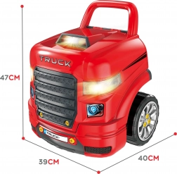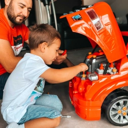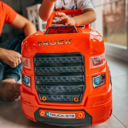 Deti si užijú jazdu na robustnom nákladiaku a zároveň sa zahrajú na mechanikov v domácej dielni – dve hry v jednom sete.