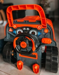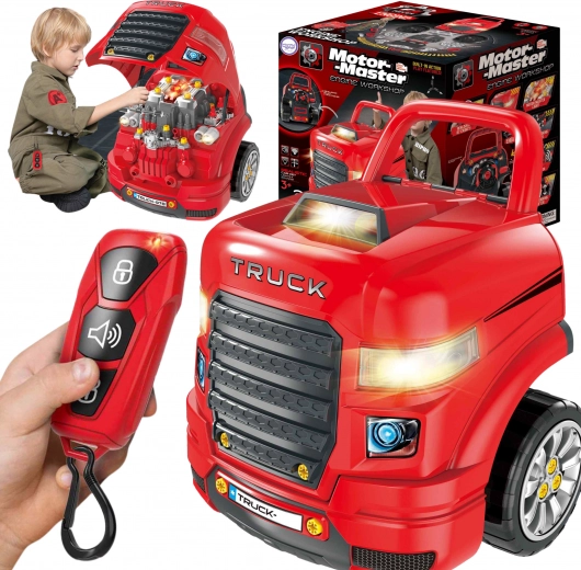 Montážna dielňa v podobe čela nákladného vozidla prináša deťom realistické zážitky zo servisu. Pod kapotou čaká bohato vybavený „motorový priestor“ s prvkami na montáž a demontáž, na palubnej doske nechýba volant ani ovládače. Svetlá a zvuky motora či klaksónu dodajú hre autentickosť – všetko možno ovládať priloženým diaľkovým ovládačom.