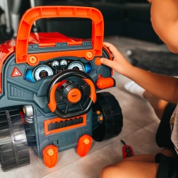Objavte interaktívny predok nákladiaka od značky WOOPIE s otváracou kapotou, volantom a palubnou doskou, ktorý deťom ponúkne desiatky mechanických aktivít. V úložnom priestore nájdu nástroje, skrutky a súčiastky na montáž aj demontáž. O zábavu sa stará svetelný a zvukový modul (motor, klaksón) s diaľkovým ovládaním a praktický zdvihák kolies. Skvelá hračka pre malých mechanikov, ktorá rozvíja jemnú motoriku, predstavivosť a technické zručnosti.