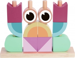 Kvalitné drevo a bezpečné farby zabezpečujú odolnosť a bezpečie pri hre. Jemné pastelové odtiene lákajú ku kreatívnemu skladaniu.