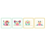 Obojstranné karty s predlohami vedú deti krok za krokom a motivujú ich k rozpoznávaniu farieb a tvarov aj k skladaniu zložitejších vzorov.