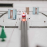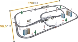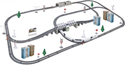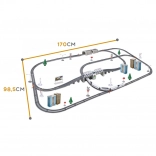 Dlhá dráha, tunel, budovy, stromy, lampy a značky vytvárajú pútavé prostredie pre rozvoj fantázie a príbehové hry.