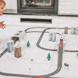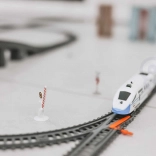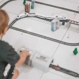 Robustné prevedenie z kvalitného plastu zaisťuje dlhú životnosť, zatiaľ čo množstvo doplnkov – značky, budovy, stromy, lampy a závory – vytvára malý železničný svet. Hra s vláčikom rozvíja jemnú motoriku, priestorovú orientáciu aj kreativitu a podporuje rozprávanie príbehov a spoločnú hru.