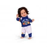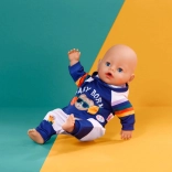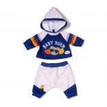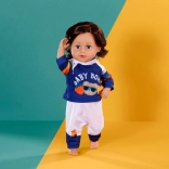 Štýlová tepláková súprava pre bábiky veľkosti 43 cm dodá hraniu nový rozmer. Set obsahuje mikinu s kapucňou a nohavice v modro‑bielej kombinácii s hravými dúhovými pruhmi a potlačou BABY BORN. Oblečenie sa ľahko oblieka aj vyzlieka, je ideálne na role-play, rozvoj jemnej motoriky a podporu fantázie detí od 3 rokov.