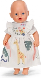Doprajte svojej bábike štýlový letný outfit. Bielučké šatičky s pestrými motívmi džungle a roztomilou žirafou majú vzdušný strih, jemné volániky na rukávoch a pohodlné obliekanie. Skvelo sa hodia na nápadité, rozmanité a dlhé hranie.
