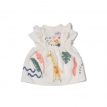 - Biele letné šaty so safari motívom a žirafou, volánikové rukávy