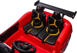 Červené elektrické autíčko 4x4 pre deti splní sen každého malého milovníka áut. Vďaka realistickým prvkom, ako sú tvarovaná karoséria, detailné kolesá a vierohodný interiér s dvoma sedadlami, pôsobí ako skutočný športový voz. Otváracie dvere uľahčujú nastupovanie a podčiarkujú autentický zážitok z jazdy.