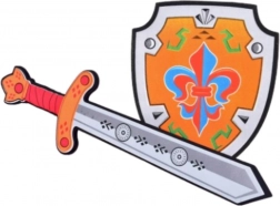 Zábavný a bezpečný rytiersky set pre deti – penový štít s erbom ľalie a pružný meč z EVA. Mäkký materiál zaisťuje bezpečnú hru bez rizika úrazu, podporuje kreativitu a skvele doplní kostým rytiera.