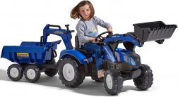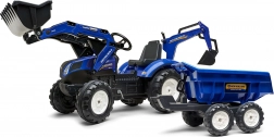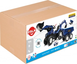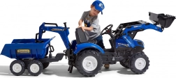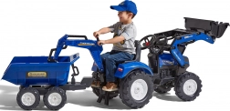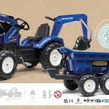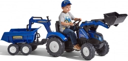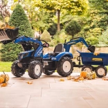Realistický detský traktor v originálnej modrej farebnosti New Holland prináša veľa vonkajšej zábavy. Deti si užijú hru s predným nakladačom, ktorý skutočne naberá, a s odnímateľným prívesom na prevážanie lístia, piesku alebo hračiek. Reťazový pohon na zadnú nápravu zabezpečuje plynulú jazdu, klaksón vo volante dodá hre realistickosť a otočné sedadlo sa postará o pohodlie.
