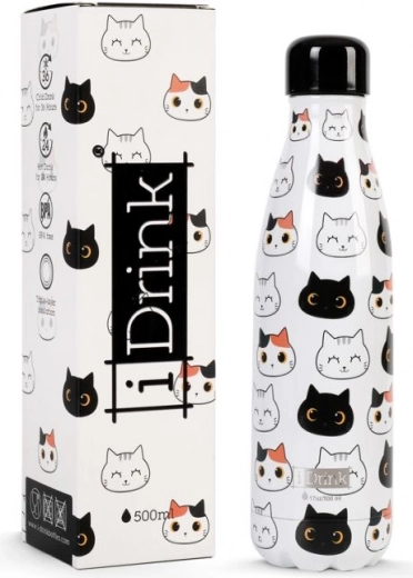Štýlová termoska pre všetkých, ktorí milujú mačky. Vďaka dvojitej stene udrží nápoje dlhšie teplé aj studené, má kompaktné rozmery a pohodlné skrutkovacie viečko. Potlač s roztomilými mačacími motívmi a elegantná farebnosť z nej robia praktický aj dizajnový doplnok na cesty, do práce aj do školy.