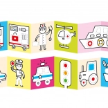 Vstúpte do sveta tvorivosti s naším kreatívnym setom, ktorý obsahuje dve dlhé harmonikové knižky s farebnými vozidlami. Tieto ucelené ilustrácie sú prispôsobené pre malých umelcov s nadšením pre kreslenie a maľovanie.